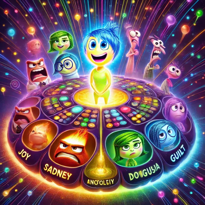 - Neşe (Joy): Riley’nin en baskın duygusuydu ve onun mutlu olmasını sağlamak için elinden geleni yapıyordu. Neşe, hayatın olumlu yönlerine odaklanarak Riley’nin her anını keyifli hale getirmeye çalışıyordu.